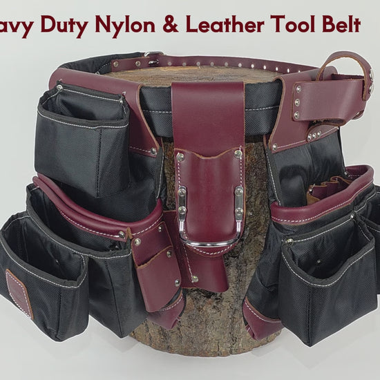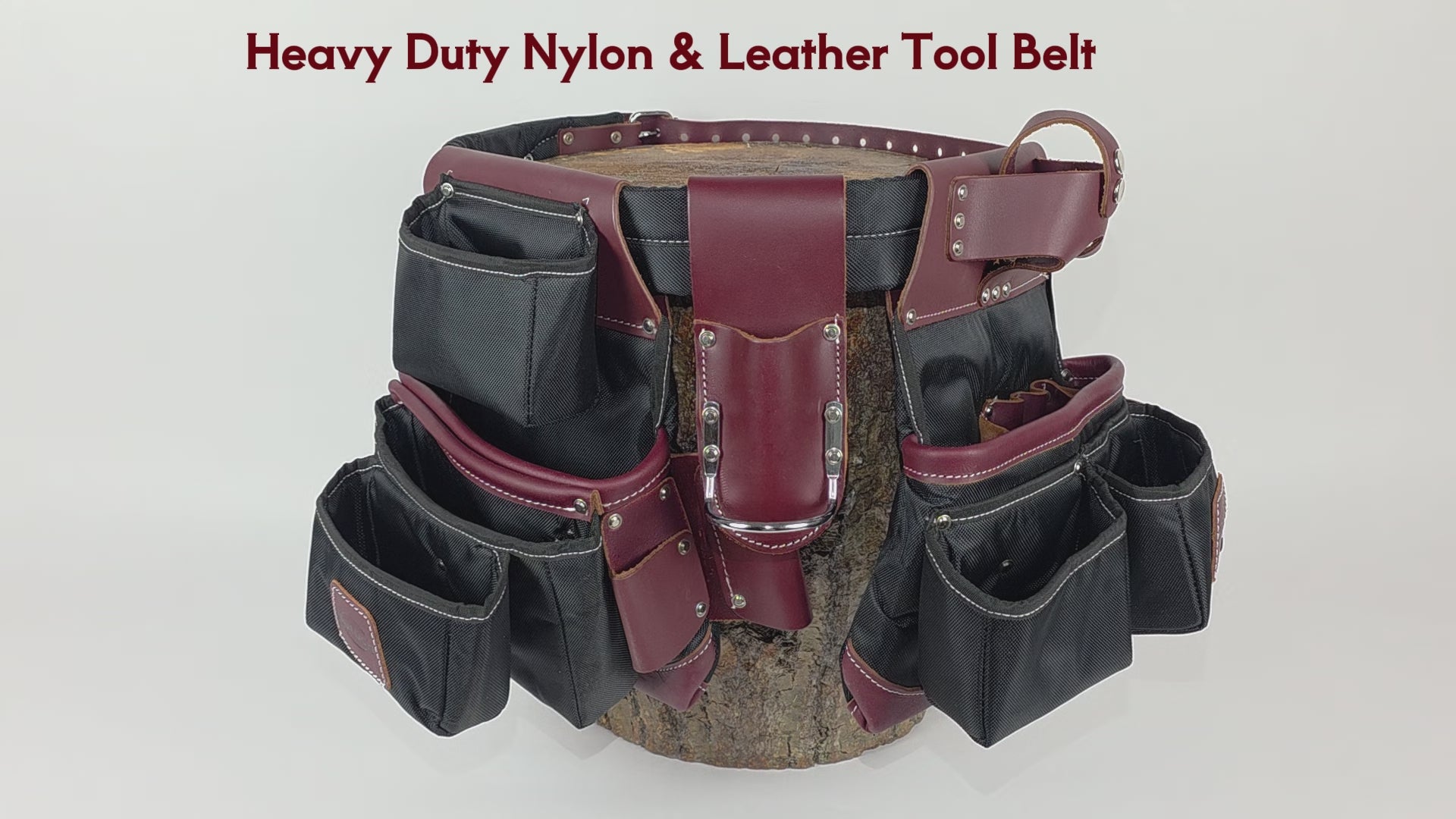 NUTUCH Black Nylon and Leather Tool Belt | Framing Tool Bags | Nylon Tool Pouch | Carpenter Tool Belt | Electrician Tool Belts | NT-1100-R