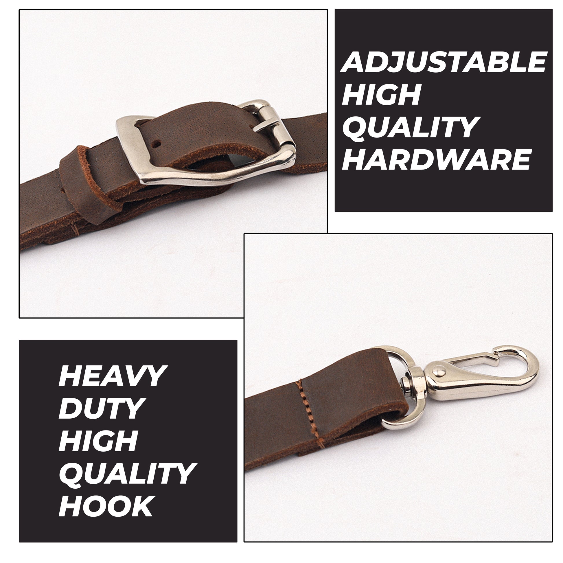 - These leather suspenders for men dress pants feature full buffalo leather and durable metal hooks, 1 inches wide and a very smooth texture.