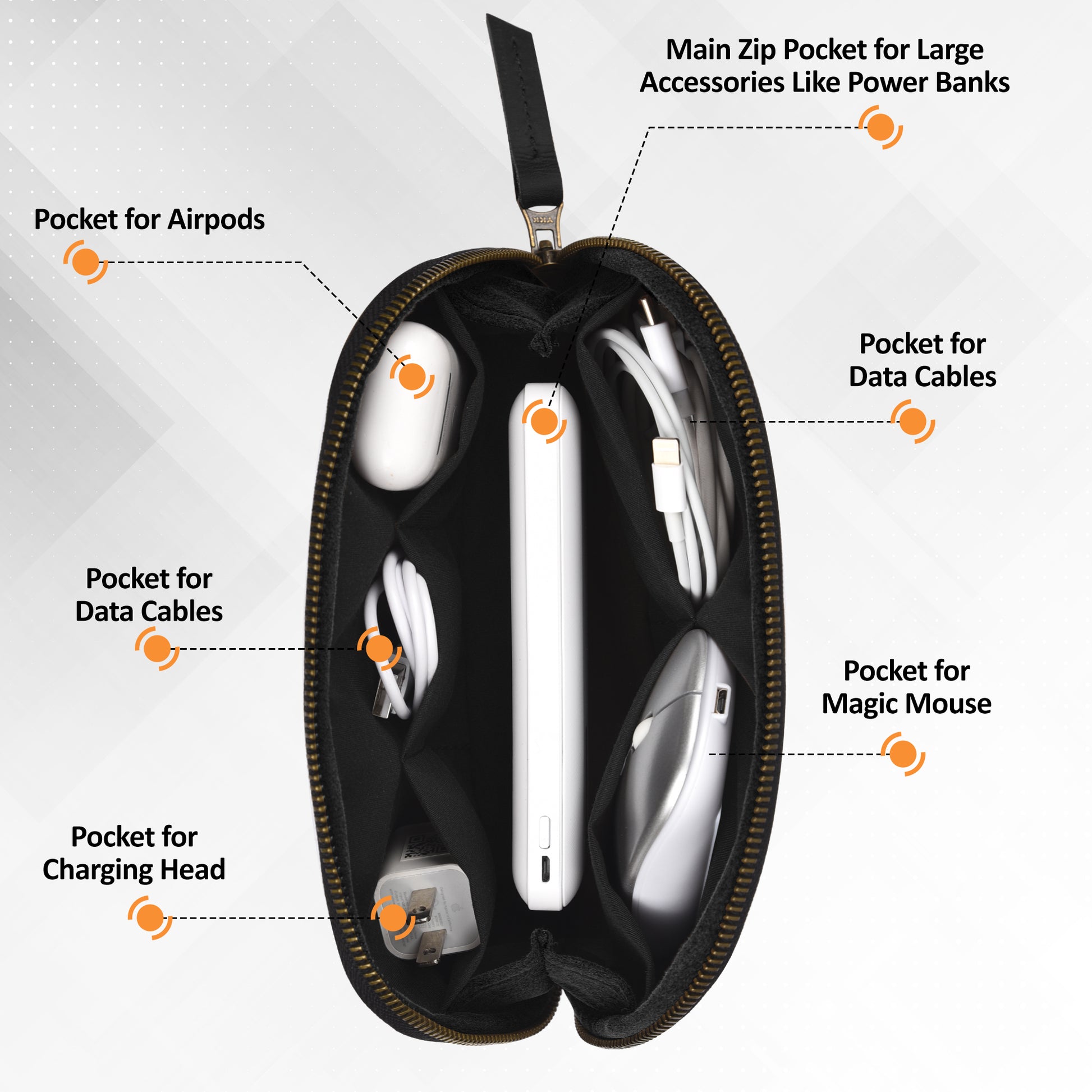 - Nutuch Leather Cable Organizer protects all your mini-items, data cables, cords, USB, chargers, headphone, phone, mobile, power bank, passport, bank notes, cards and other electronic gadgets.