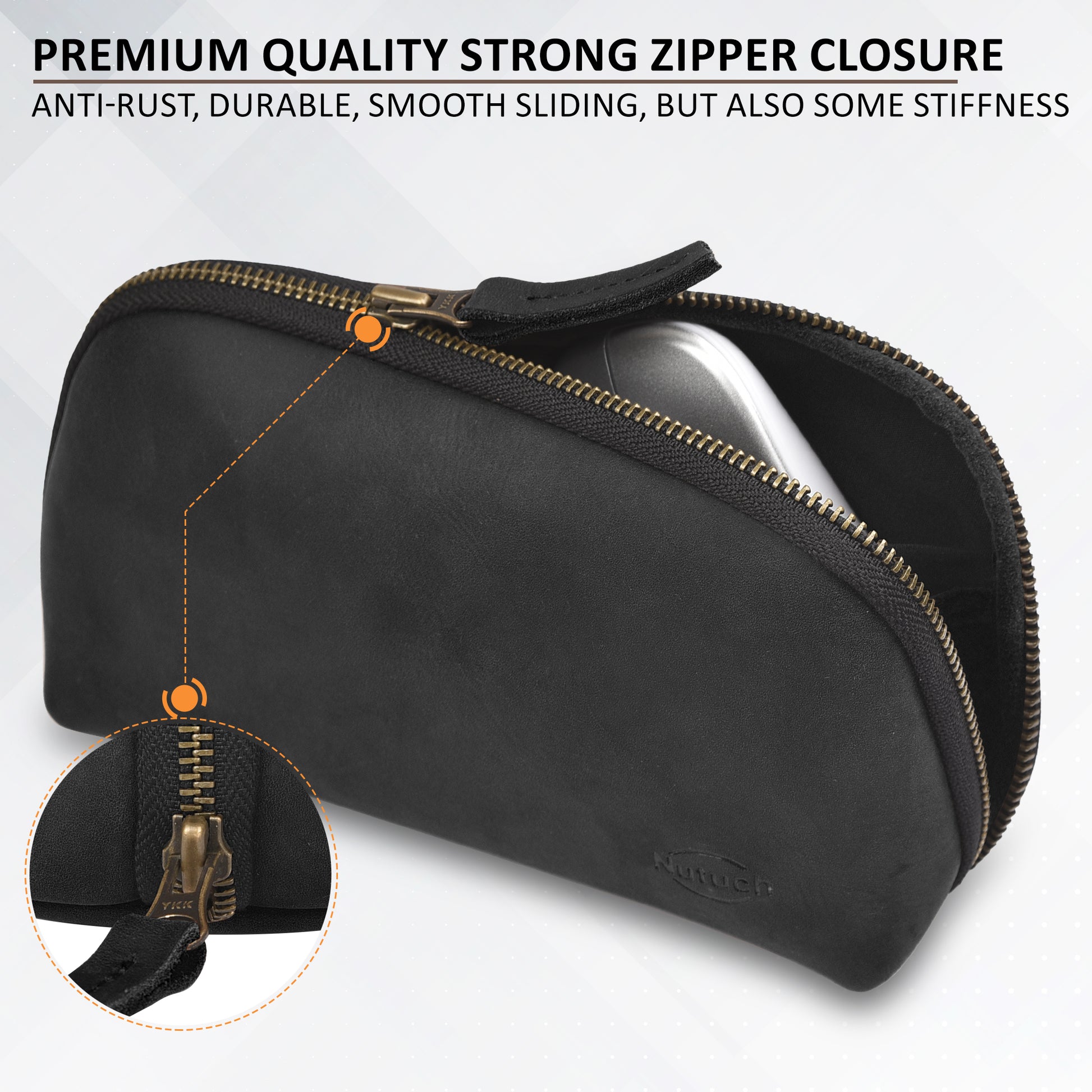 - Nutuch Leather Small Tech Pouch is made by the highest Quality of Full Grain Leather. The durability, softness, the unique texture ensures a long-lasting life with full of Grace.
