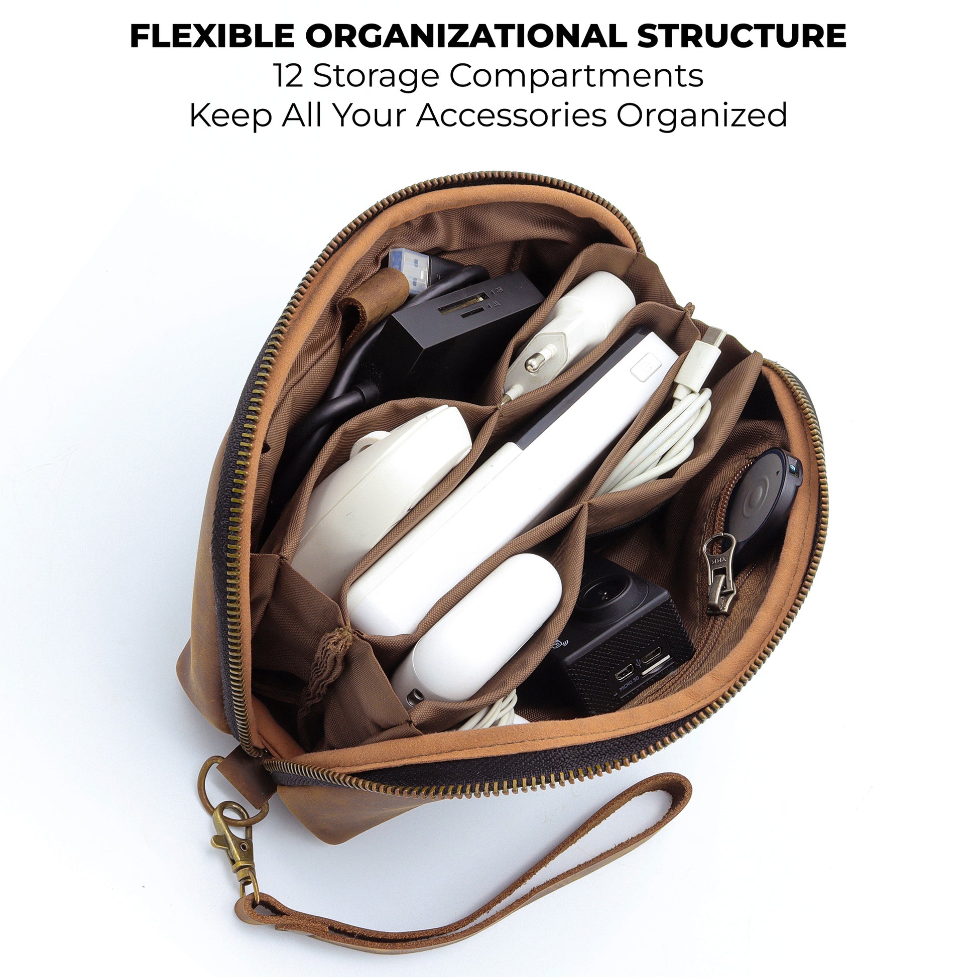 - Whether you're on a daily commute or an extended vacation, you likely carry numerous electronic accessories. This NUTUCH tech organizer features a smart layout and well-structured storage, providing unmatched organization and quick access keeping your essentials tidy and within reach.